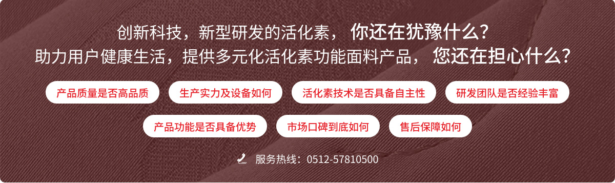 以規(guī)模底蘊(yùn)為基礎(chǔ) 致力于為您提供高質(zhì)量、高功能的活化素功能面料系列產(chǎn)品